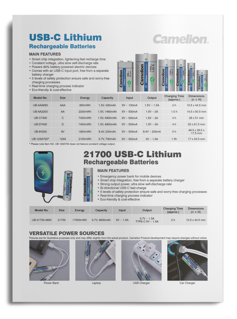 Camelion Lithium USB-C leták (anglicky)